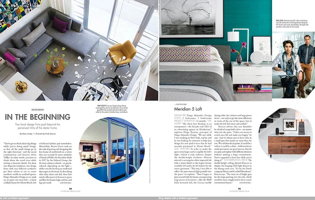 A new luxury building in the heart of South Beach presented Diego Rincon, of Diego Alejandro Design, with a fairly unlikely interior design challenge for Miami Beach — a two story, open loft layout. In describing what he chose and did, he offers practical lessons in space and flow for homes high and low, and big and small.